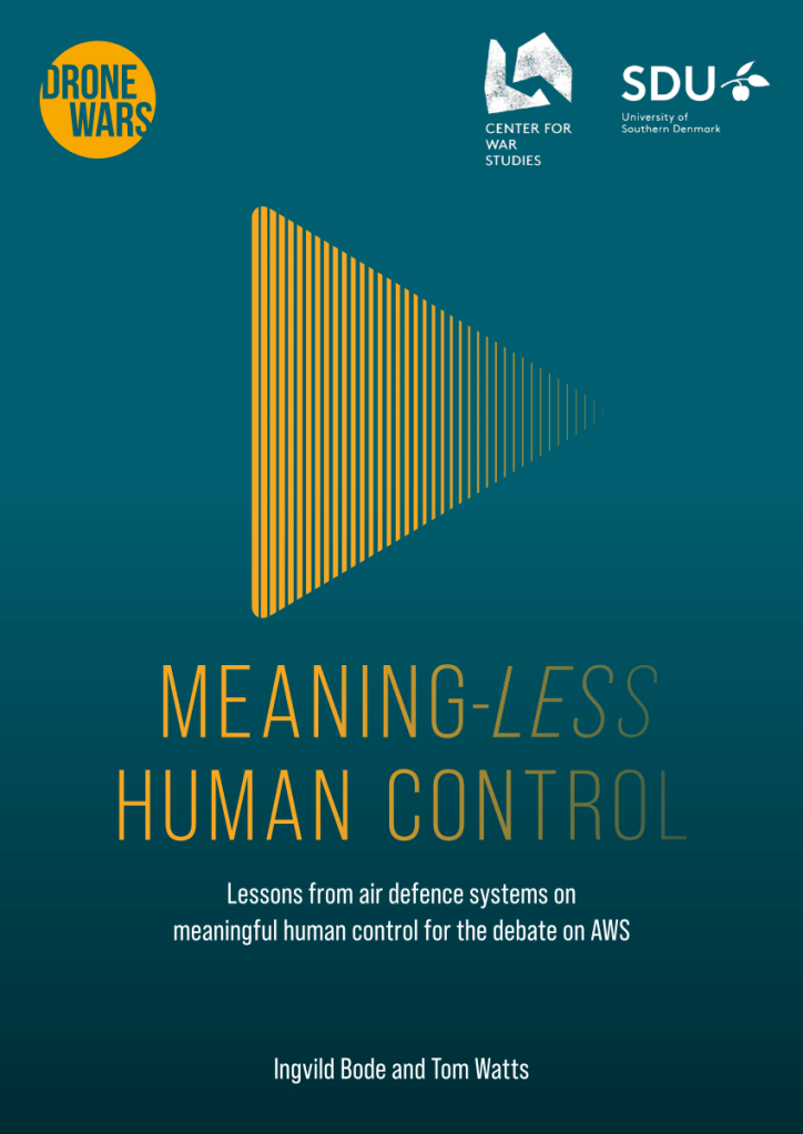 - Meaning-less human control: Lessons from air defence systems on meaningful human control for the debate on AWS. Published in collaboration with Drone Wars UK, 1-72, with I. Bode (2021).